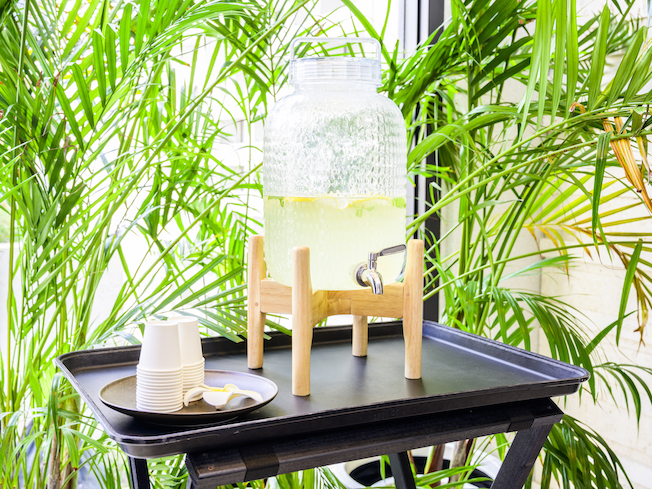 また、色鮮やかな宮古ブルーの壁やあえて魅せる裸電球、クリーム色のソファなど、インテリアにもこだわっています。